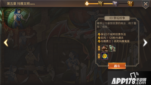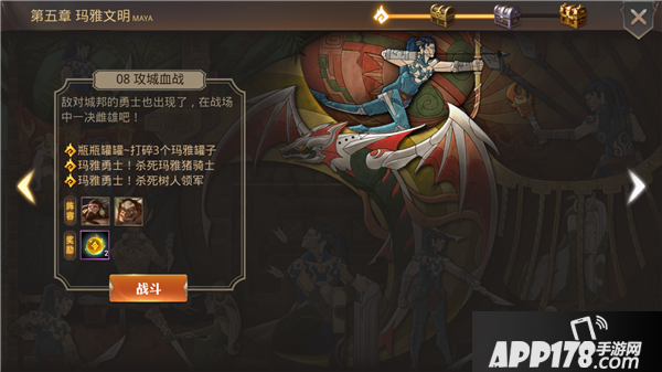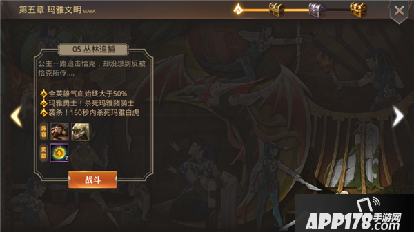 全英雄气血始终大于50%,杀死玛雅猪骑士,160秒内杀死玛雅白虎。这个战役的难度挺高,主要是玩家需要在规定时间内击杀BOSS,这一点有困难。