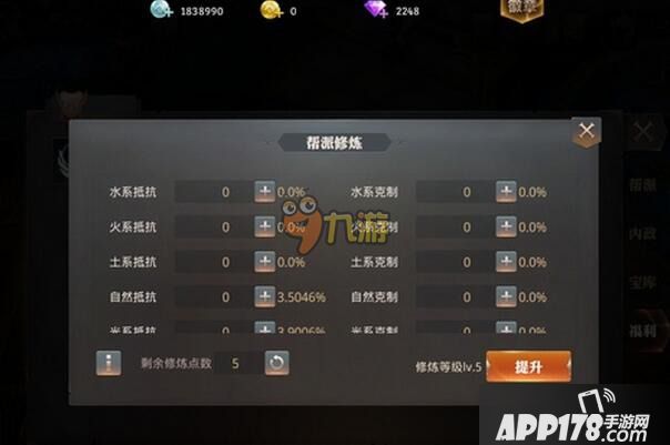 1、帮派修炼:提升修炼等级获得的点数可提升元素克制和抗性