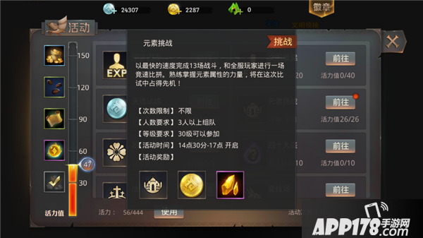 首先,元素挑战是按照通过时间进行排名的,所以大家就需要组强力的队伍,最好平均等级相似,战斗力强悍的队伍,这样通过时间肯定会大幅度减少啦。当然如果你等级不高,战力不强,那就需要用到一定的技巧了。