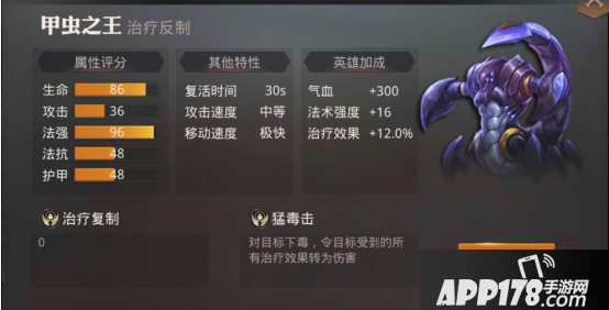 和雷王一样属于针对型随从,对面有奶妈的时候可谓是神一般的存在,这里技能描述貌似没写上,下面我给大家描述一下,甲虫之王的一技能是可以可以复制附近敌方的治疗,并以百分百的形式反馈到玩家的英雄身上。举个例子,甄姬在我旁边放了个大,那么不止甄姬回血,我也会回血,而且这个技能可以叠加,甄姬大是群回血,假如甄姬附近还有两个人,那我回的血量是他们三个的总恢复量的百分比,超强啊有没有!!!!