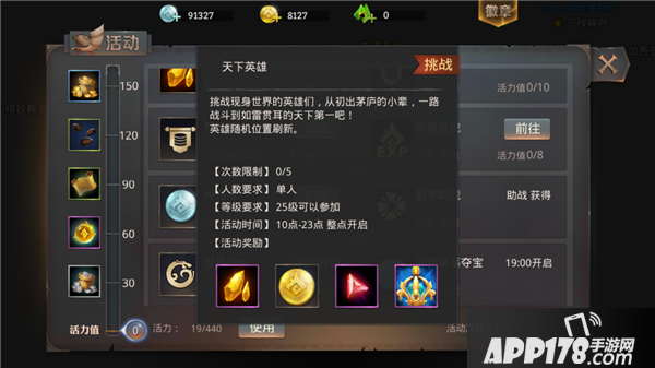另外要记住,天下英雄的星级越高,玩家可以获得的奖励就越多,等玩家挑战死刑及以上天下英雄的时候,有几率爆神器!所以大家一定要合理安排次数,多多挑战高星级的天下英雄,这样奖励才会多哦。