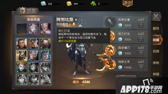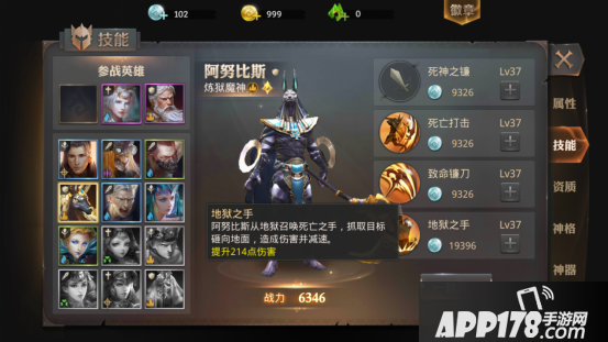 死神之镰,提升伤害。这个技能的伤害会随技能等级的提升而提升,所以玩家在使用阿努比斯的时候不要忘记提升阿努比斯这个技能的等级哦。