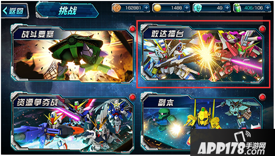 然后在挑战界面中选择右上角的敢达擂台进入。