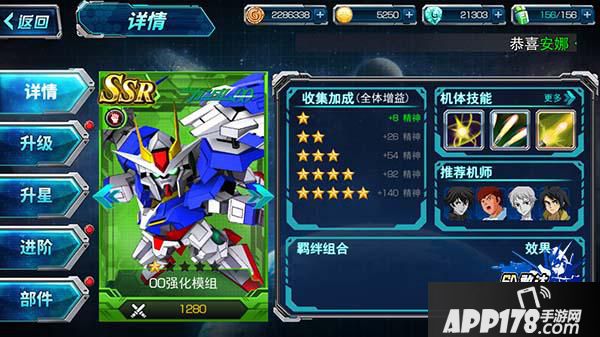 升星带来的精神的增加和驾驶员刹那带来的普攻和精神的加成,很明显00强化模组属于高暴击高普攻的机动型机体,比起技能输出更倾向于普攻输出。