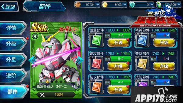 部件强化可以针对机体进行六维中某一点进行重点强化,强化所需的部件是在擂台商店以及其它各种战斗中获得,虽然一个部件升级幅度很小,要知道在战场上有时候就凭借那么一点点的小差距就能决定胜负!而且如果大量使用部件对某一机体强化,强化效果也是非常可观的!