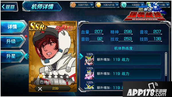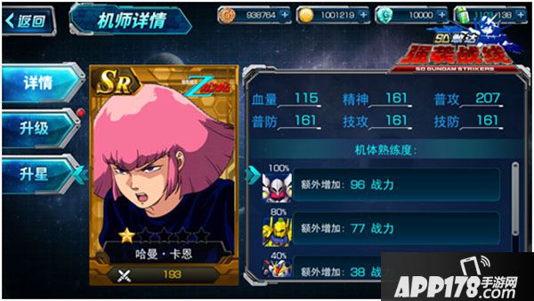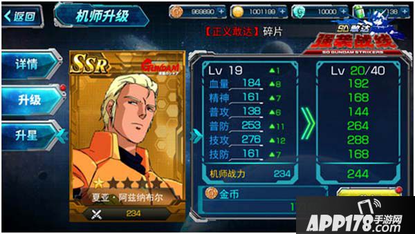 说到阿姆罗•雷,怎么能不提到与他相爱相杀(大误)的夏亚•阿兹纳布尔呢。同样是走技攻流,与技攻较高的沙扎比达到100%的驾驶熟练度。虽然与UR的阿姆罗•雷相比,同等级属性数值上稍有不足,但是在战斗时用夏亚•阿兹纳布尔来编组也是很好的选择,首先UR毕竟产出稀少,在SSR机师中夏亚•阿兹纳布尔的属性面板较为均衡尤其技攻和普防的突出攻守兼备,并且同样能够熟练操作较多机体,对于副本掉落碎片的百式有90%的熟练度,性价比超高有没有!