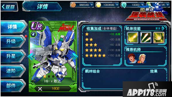 当然,UR这种超级超级稀有机体并不是人手一台啊,现在我们就来介绍一下平民向的选择。对于SSR机体来说,阿姆罗•雷首选的适配机体还是v敢达,毕竟100%的熟练操作度,能让机师发挥最大作用。当然,在没有希罗•尤尔或是刹那•F•清音情况下,对于飞翼零式敢达和00强化模组来说也是较为理想的选择。