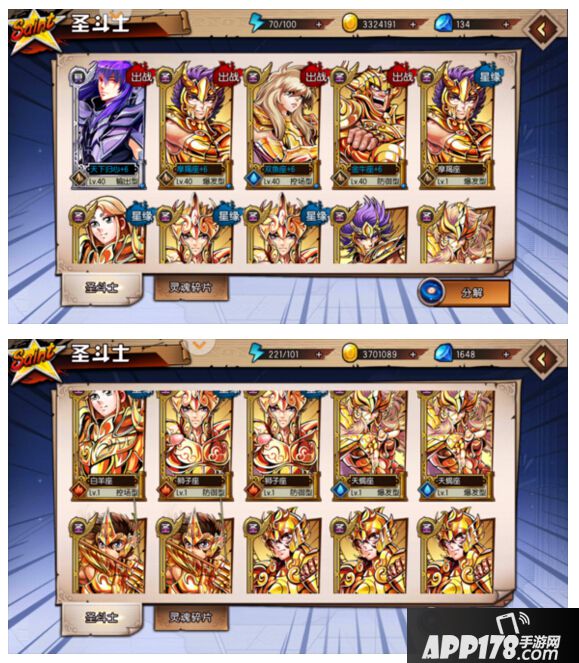 升星(主角只需要突破石),出战阵容类的圣斗士每到一个相应等级需要突破石或突破石+同角色卡片进行升星提升大幅属性