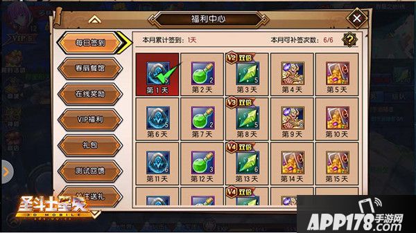 《圣斗士星矢3D》中的福利中心,为各位玩家精心准备了各种可以帮助玩家提升实力的游戏道具。在每日签到中,玩家可以获得提升装备等级的装备精炼石、提升角色等级的经验药水、提升圣斗士星级的突破石、强大的圣斗士灵魂碎片、还有闪闪发光的金币宝箱。在春丽餐馆中,善良的春丽每天为玩家提供三次体力,是免费的哟!不过一定要记住领取时间,分别是:12:00-14:00、18:00-20:00、21:00-24:00。在春丽处领了体力,以及丰厚的在线时间奖励。