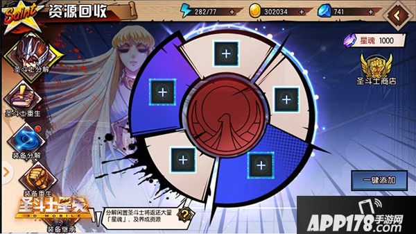 在《圣斗士星矢3D》特有的回收界面中,我们可以把不需要的圣斗士分解成星魂。将不需要的装备分解成魂器。还可以在圣斗士重生的功能中,让圣斗士回到1级,并且获得大量的培养资源。在装备重生的功能中,我们一样可以让装备回到初始状态,并获得曾经的培养资源。在装备继承的功能中,我们可以将装备A的等级、强化等级、精炼等级100%的转移到装备B上。但是要注意的是,继承结束后,装备A将变回初始状态(1级0星),装备只能同品质或者向更高品质的装备上进行继承哦,而且必须是同部位的装备才可以进行继承。最重要的是,被继承的装备,在继承时,必须没有经过任何的升级、强化哦。