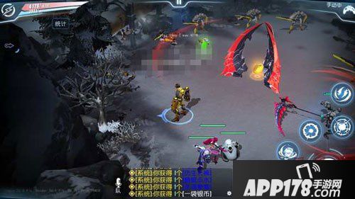 游戏的战斗界面如上,主要有五块区域组成,界面的右下角为玩家操作的技能按钮;界面的中间下方为游戏的信息显示界面,主要显示来自系统频道、世界频道、当前频道、公会频道、队伍频道、组队频道、私聊频道的信息;界面的右上角为玩家可选的操作模式,主要包括手动操作模式、自动普攻操作模式、自动技能操作模式;界面的左下角为玩家移动的摇杆按钮显示。