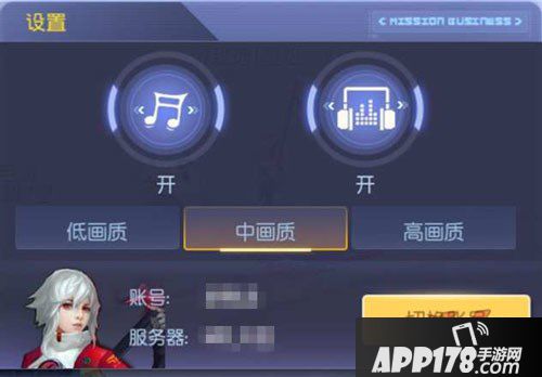 设置界面:可对游戏的音乐,音效进行开关,并选择游戏的画质。