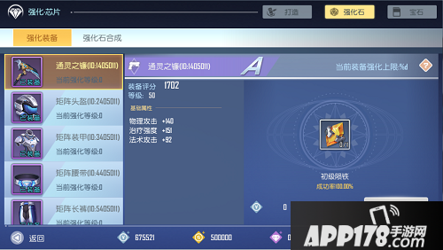 使用陨铁可以对装备的基础属性进行强化,强化到一定等级后会有特殊的光效。