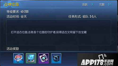 而在40级时,团队副本古神位面同样也开启了,3名以上的玩家可以组队进入这个活动副本,提升层数来获得更高的奖励。