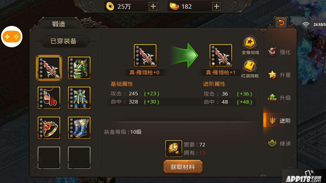 6、装备,每个人物都可以穿六件装备和两件徽章。档次越高增加战力越高。装备可以升级,强化,升星,进阶,继承镶嵌宝石来增加战力。