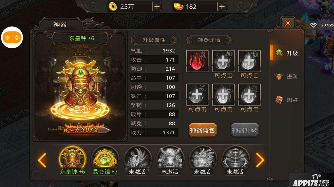 10、神器,神器和美人的概念差不多,都是可以把神器的属性附加给人物进行升战力。
