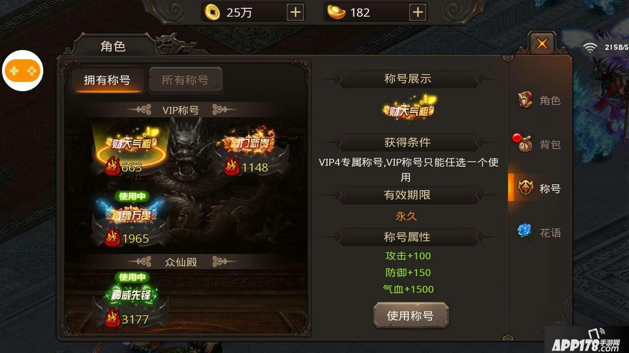 2,称号呢,称号当然就是一个人的称谓,很拉风的。称号可通过活动中过去,比如充值。充值到一定的程度就可以自动解锁称号了。当然,称号也是可以增加战力的。