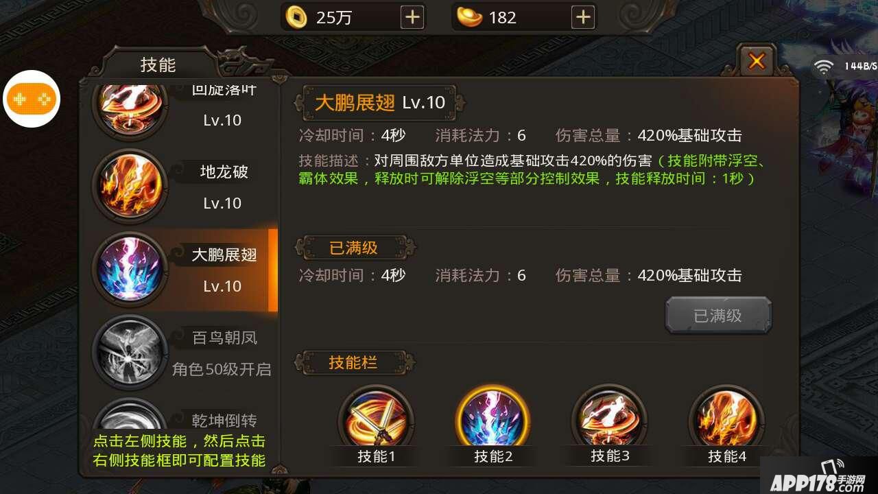 4、技能,技能相信大家都很熟,就是一种武术,一种把伤害体现出来的方式。升级技能就可以增加战力,每个技能满级是10级,达到相应的等级自动解锁技能。