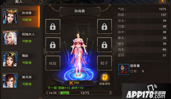 美人——多位三国历史美人,等待与你双修。修炼美人不但可提升自身战斗里,提升达到条件,还可开启下一阶更多美人呦!