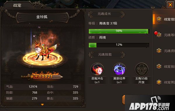 战宠——提升宠物资质和等级,还可获得强大的战力加成。