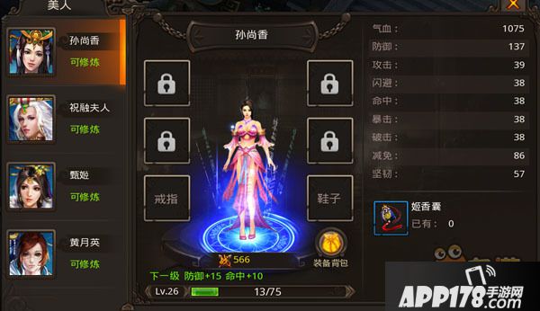 美人——多位三国历史美人,等待与你双修。修炼美人不但可提升自身战斗里,提升达到条件,还可开启下一阶更多美人呦!