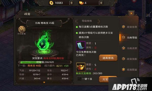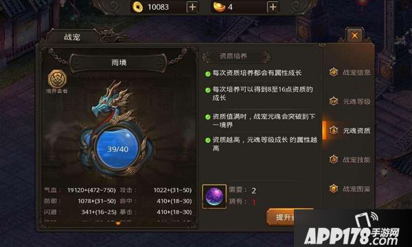 特别提示:宠物技能的修炼,会直接增加人物属性,而且不是失败哟,只要熟练度满了,技能碎片足够就能进阶啦