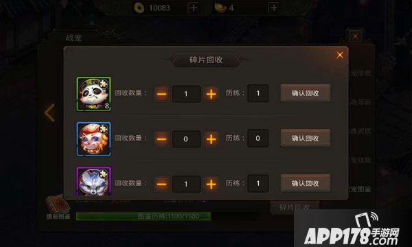 特别提示:战宠碎片实在太多的,可以回收哟,增加图鉴战力的