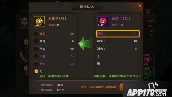洗练只能同种首饰,选择多余同样未穿戴的首饰来洗练【提示:有多余很多的首饰可以选择自己想要的属性洗练】