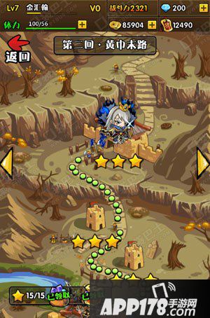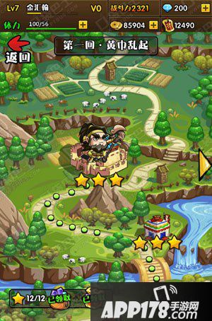 第二回:黄巾末路,黄巾末路相对于黄金乱起关卡难度可以说进行了提升,玩友们就要使用通过战斗获得的一些材料,进行武将升级和进阶了,在第二章中,玩友们也会获得新的武将,所以阵容搭配上也要进行调整。