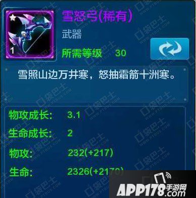 冰蓝剑,紫,装备后武将攻击+220,每强化1级攻击约+22