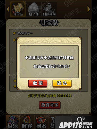 寻宝时间为半小时,半小时后完成寻宝,获得寻宝奖励,当然玩友们也可中途放弃寻宝,但不会获得奖励。