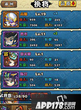 换将顾名思义就是更换我们队伍的成员,玩家们要对各个武将有比较详细的了解,这样才能分配好他们的队伍,在换将的时候还可以使用下阵,将你不使用的武将下掉哦。