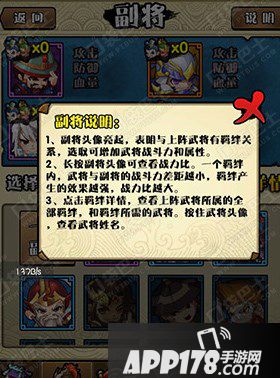 1.副将头像亮起,表明与上阵武将有羁绊关系,选取可增加武将战斗力和属性