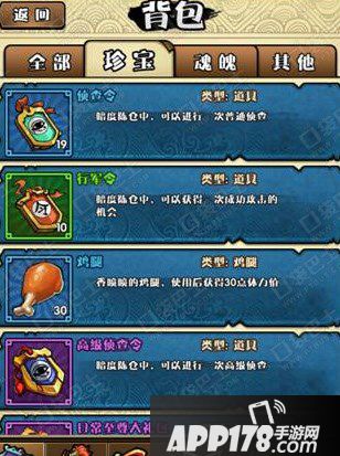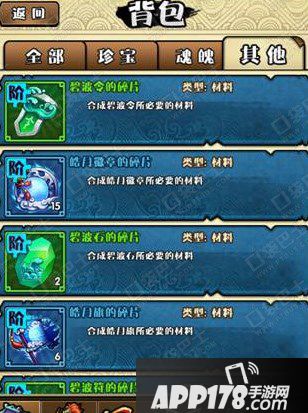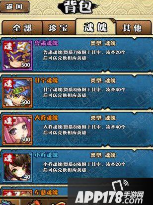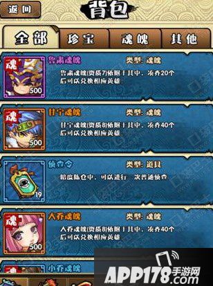 背包分为全部、珍宝、魂魄、其他等几样物品,这几样物品都是玩家在游戏中非常重要的道具,下面小编就来介绍一下几类物品的作用。