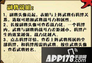 玩家可在阵容——换将——副将中查看详细的说明。