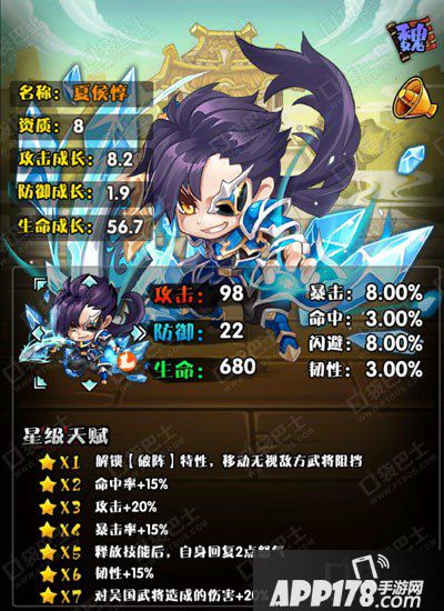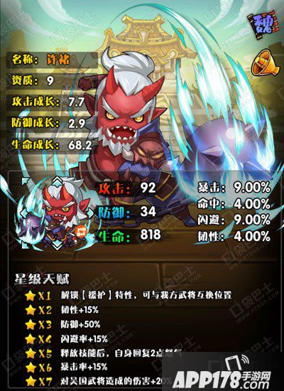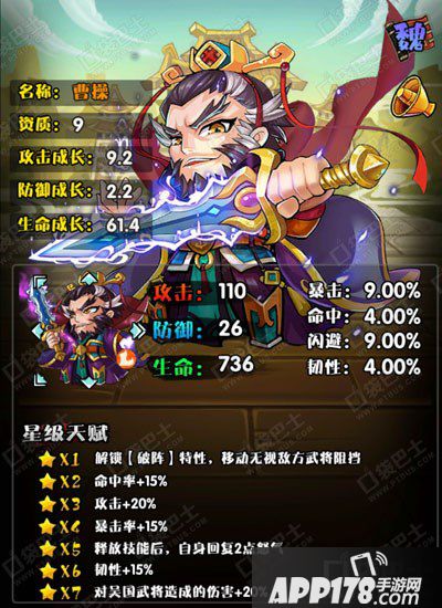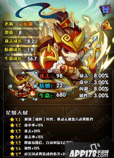 APP178手游网>三国笑传>游戏攻略>三国笑传魏国武将大全 橙色武将属性一览