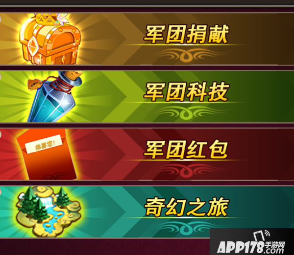军团奉献:可以向军团捐献物资,增加进度,捐献到一定量,进度增加时,能获得奖励。