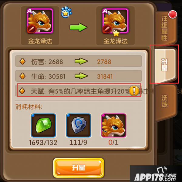 给它升星也会大幅度的提高它的战斗力,在进阶到一定程度时,还会给主角提升额外属性呦~简直不要太划算。
