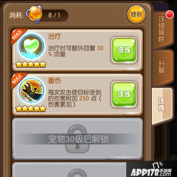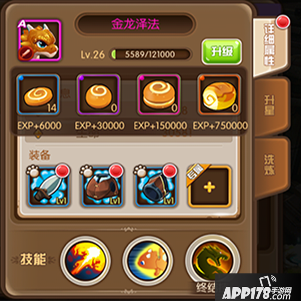 小金龙在等级达到一定级别时,会解锁附加技能,技能的星数越高,效果也就越加给力,当然小编建议要根据宠物的属性来选择技能,因为它是输出型的宠物,最好能洗炼出与之属性搭配的技能,使得它的战斗能力最大化。