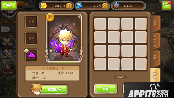点击‘背包’-‘时装’,就能看到人物角色现在的时装装备,分为‘武器’ ‘套装’和‘翅膀’, 每个装备栏的里所装备的配饰都具有其特殊的时装属性。时装可以整理,低级时装还可以熔炼,绝对不浪费小伙伴手中的任何资源!点击‘理发店’,还可以给小守护者们改变发型哟!