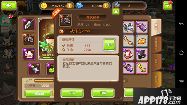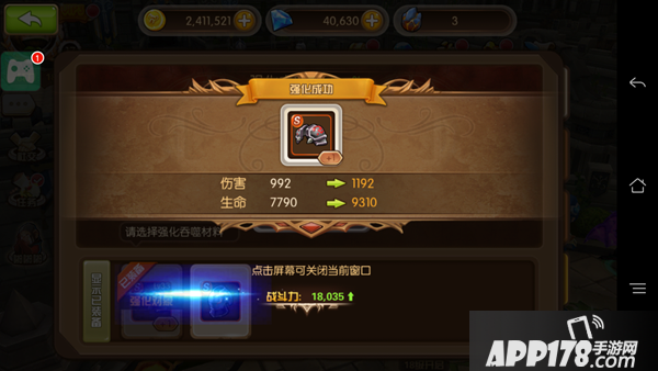 快打开身上的小背包,赶紧去强化S级装备吧,没有最强的武器,只有更强的装备哟!