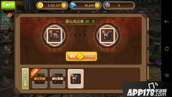 小守护者们可以选择背包内其他的S级装备材料强化现有的S级装备;注意咯,强化成功率是有一定概率的哟。