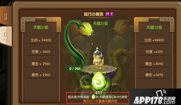 需要注意的一点是,天赋值每日24时会清零,所以守护者们在天赋石不够的时候尽量不要去升级哦,避免不必要的浪费。