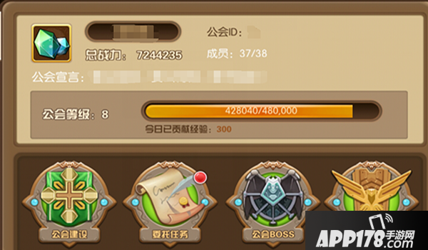 在进入或创建公会以后,在此界面我们可以看到有关公会的相关模块。这些都是可以增加公会经验的,公会经验达到一定程度时就可以升级了,那么公会升级最大的好处是什么呢?我们接着往下看就知道了~