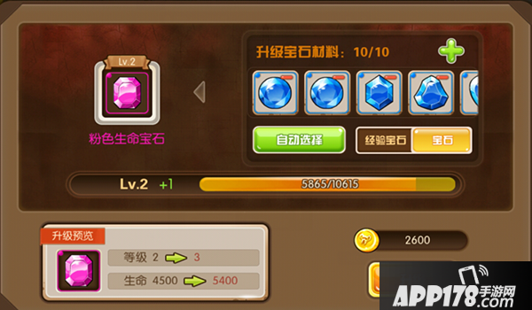 宝石升级可以快速的提高战力和属性,通常我们用到的便是经验宝石来升级,当经验宝石不充足时我们也可以用低级品质的宝石来升级呦,合理得利用资源才是智者之选。所以当低级宝石富余时我们就可以拿来升级,既能提升战力又能腾出空间,再合适不过了。