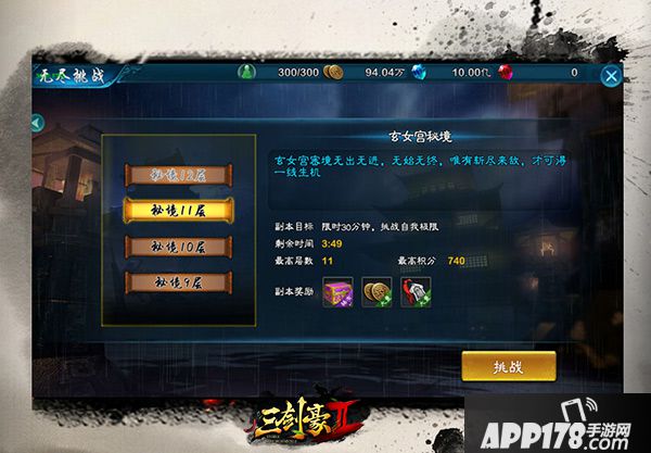 无尽挑战每日限时30分钟,可以无限次进入,时间消耗完后无法进入.