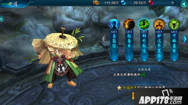 主角生命属性提升2%(心法效果随侠客星级提升)