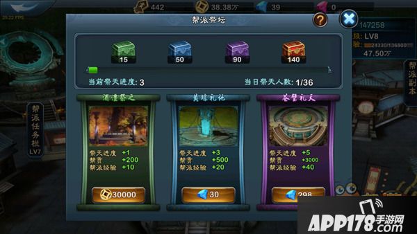 此次终极内测,《三剑豪2》开启帮派玩法,具有3D的“帮派领地”界面。目前帮派开放主流的标配功能,帮派任务、祭坛、商店。玩家加入帮派后,可以进行一些互动玩法,如帮派副本,推图即获得稀有道具。