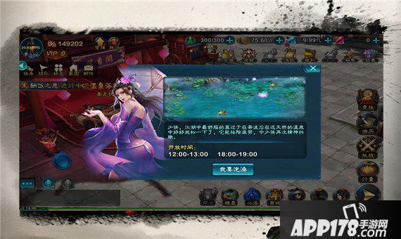 温泉开启后,在收益时间内进入即可获得经验,中途可通过购买道具提升经验加成。