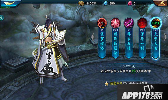 在场侠客每人分摊主角7%受到的伤害。(心法效果随侠客星级提升)